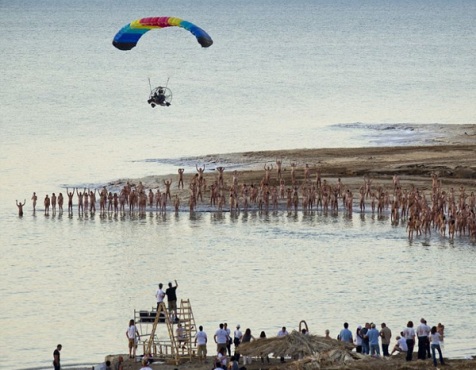 تجمع ألف إسرائيلي عارٍ في البحر الميت من أجل التقاط 'صور فنية' بناء على رغبة أحد المصورين، الذي امتنع عن تبليغ السلطات المعنية خوفا من أية انتقادات دينية أو الاعتقال.